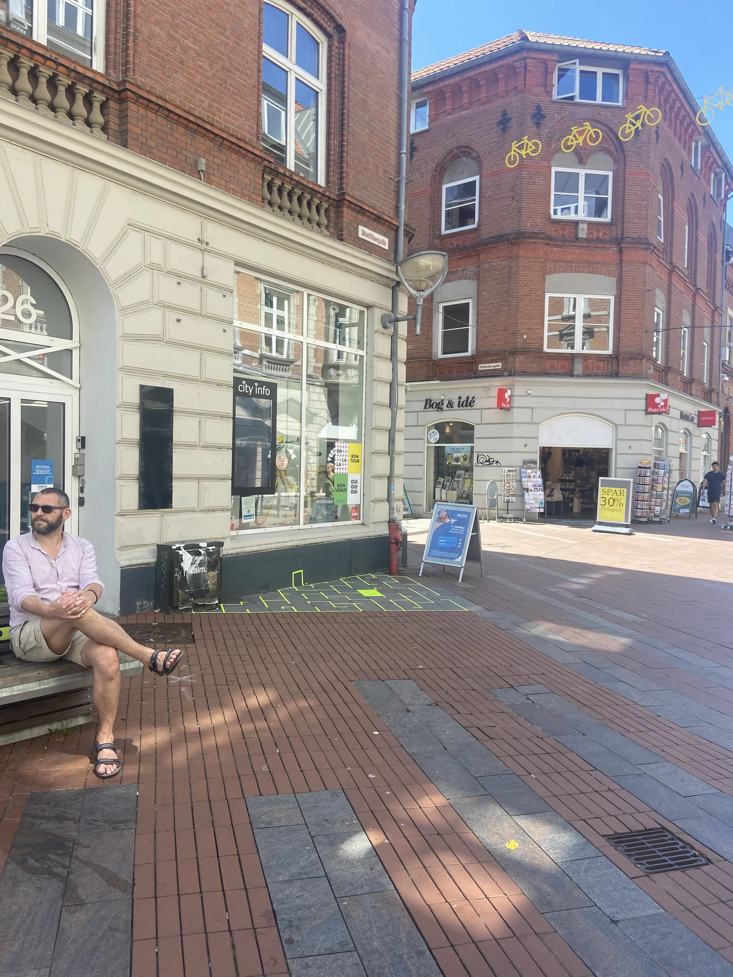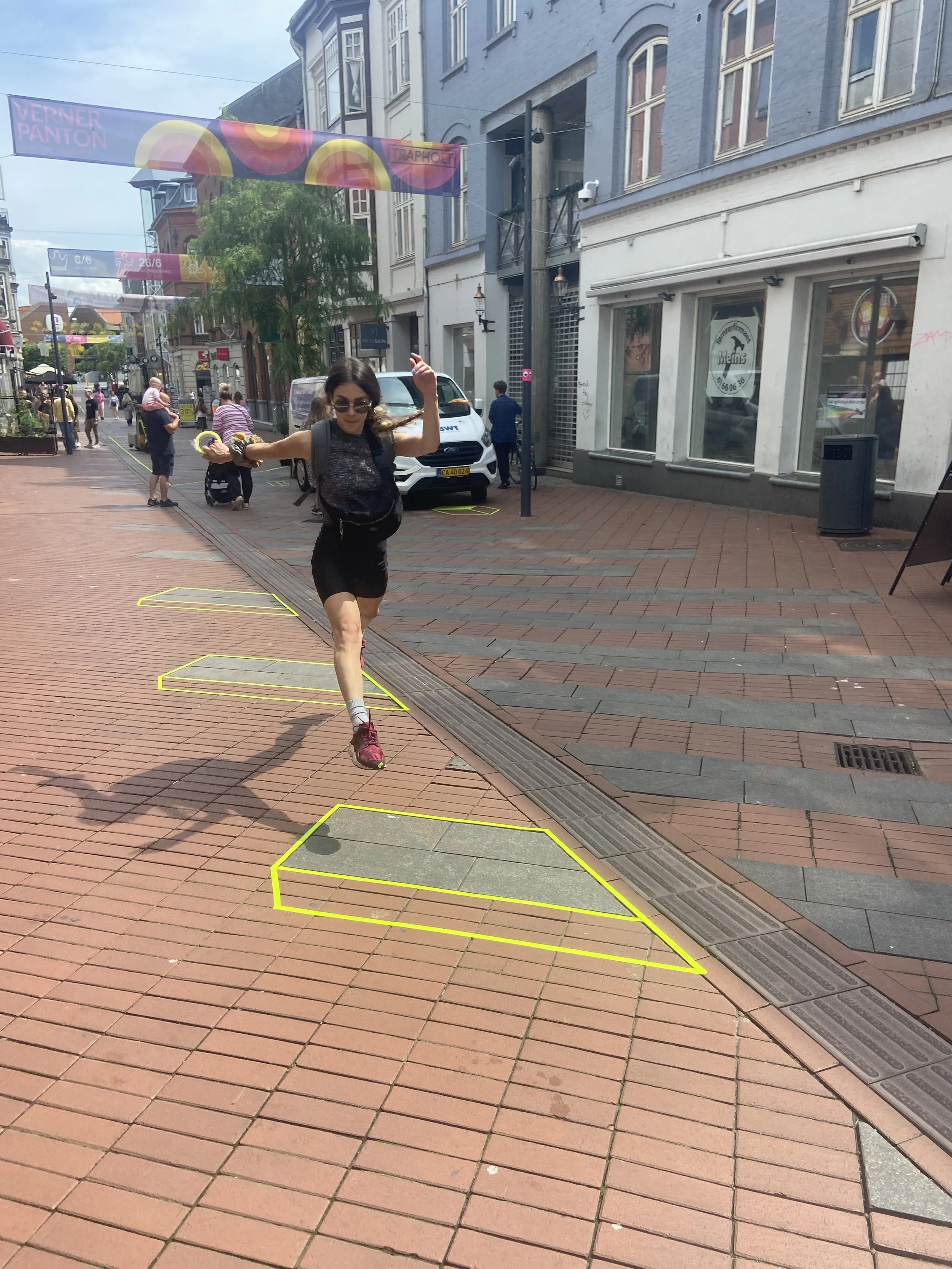 My mission is to Create play awareness in the city and keep the child spirit alive in people by creating engaging and fun experiences. The geometric shapes scattered around the city serve as markings for Tour De France .As the cyclists go around the city the yellow lines revels the beauty of the Kolding city